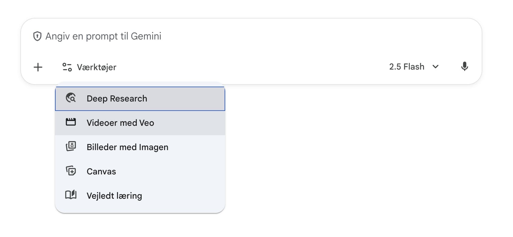 Funktionen er tilgængelig er i Pro-versionen af Gemini og du får adgang til den ved at klikke på indstillingsikonet til venstre i feltet, hvor du prompter tekst.