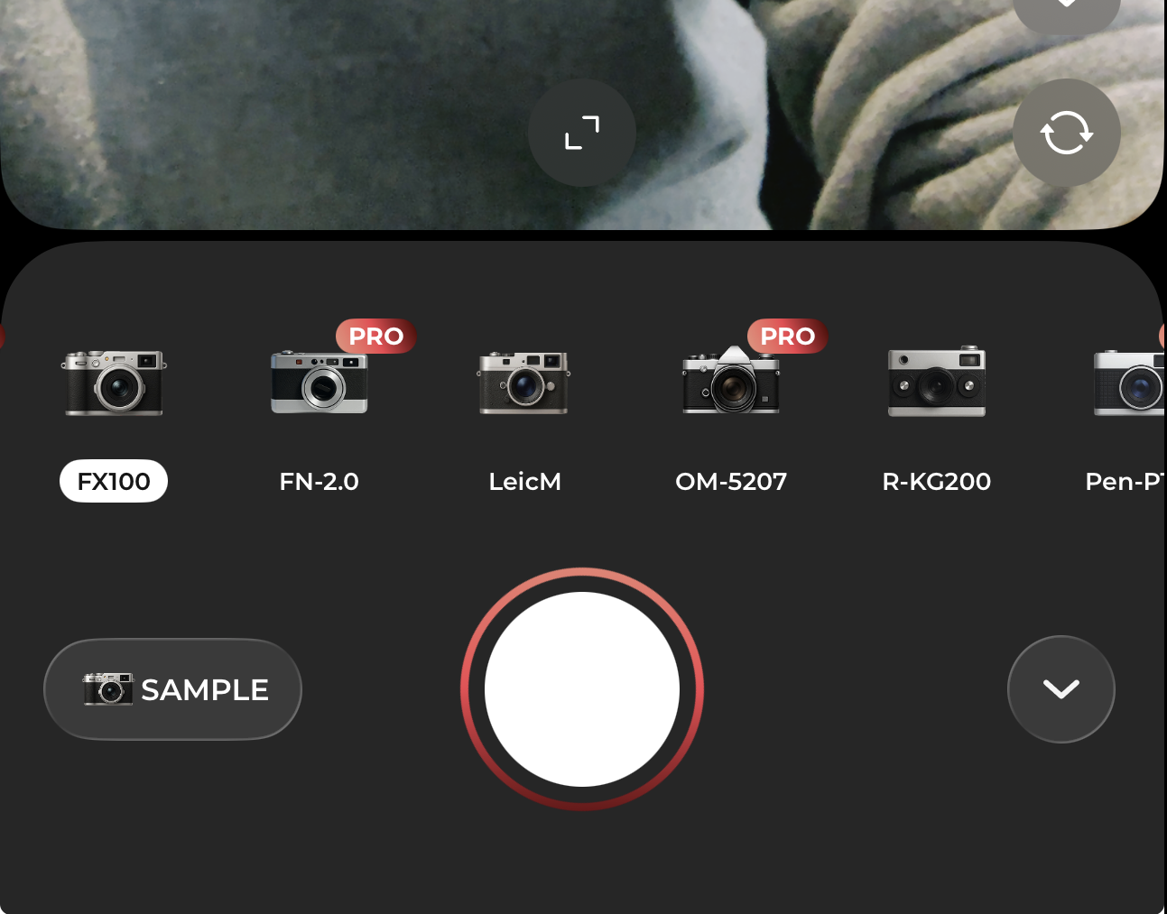 Wayshot tilbyder ikke kun topmoderne AI. Appen lader dig også gå i en helt anden retning. Indbygget i kameraet er en lang række filtre, der efterligner ikoniske eller ældre kameramodeller, fx FujiFIlm X100, Leica M samt diverse analog- og engangskameraer. Det kan være en nem måde at give dit billede lidt karakter eller et nostalgisk look.