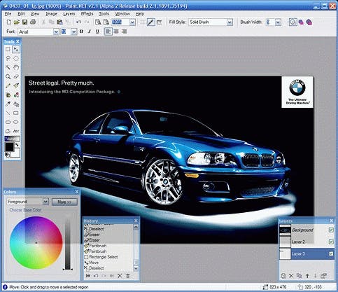 Et simpelt layout binder Paint.NETs værktøjer sammen og fremstår som et ganske fornuftigt billedbehandlingsprogram til brugeren med de basale behov.