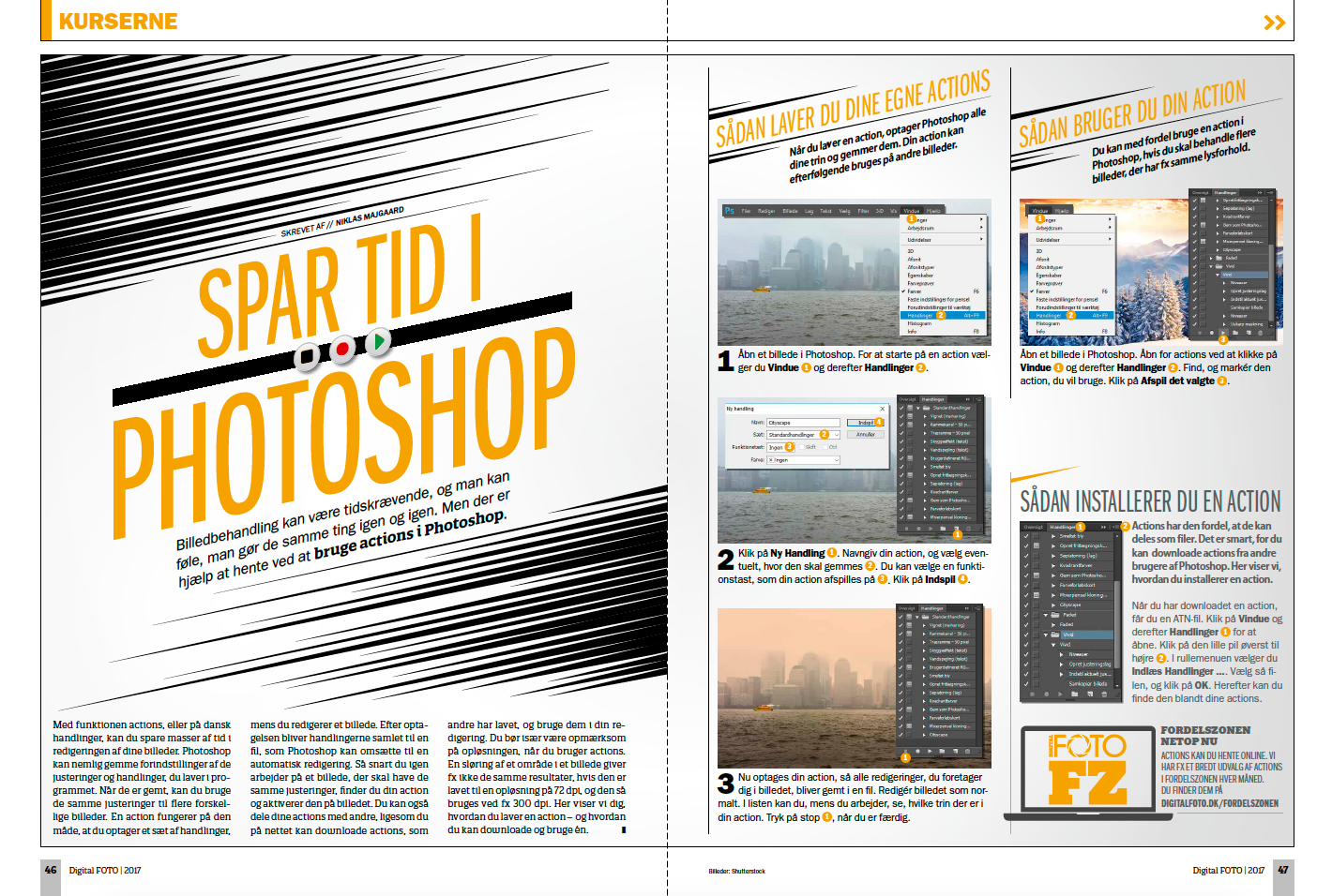 Pakken består af ti såkaldte actions, som hver især er tilpasset forskellige motivtyper. Hver action indeholder færdige justeringer, som du kan føje til dine egne billeder ved hjælp af ganske få klik.