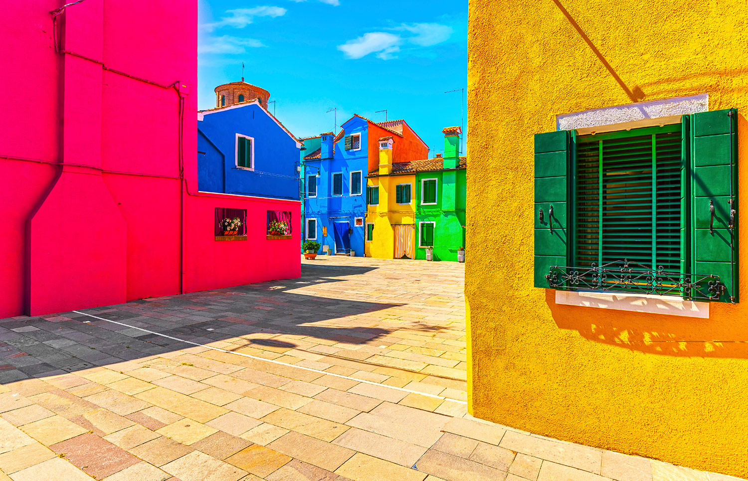 Her er den blå himmel helt mørk, og de røde bygninger næsten hvide. Giver en dramatisk effekt.