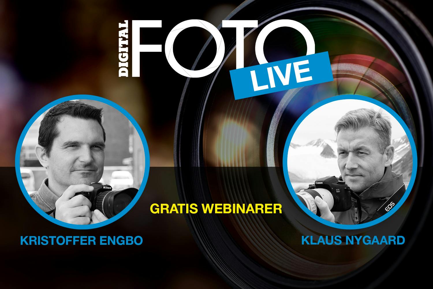 På Digital FOTO afholder vi webinarer, som vi sender direkte fra redaktionen. Hver gang er der et nyt emne, og vi kommer blandt andet med tips til fotografering, kameraindstillinger, billedbehandling og meget andet.