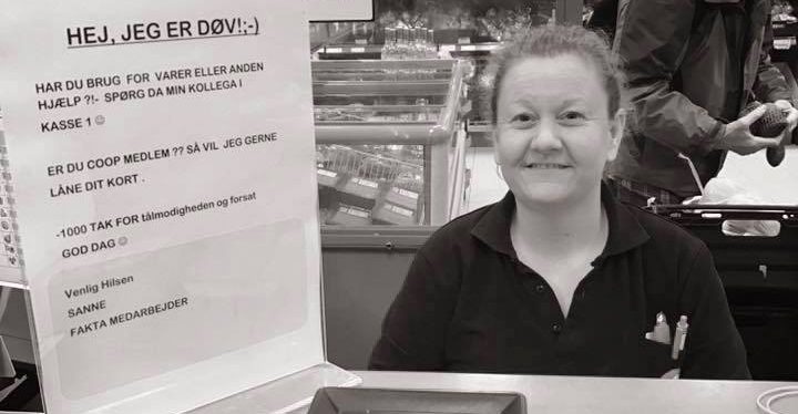 Billedet er sådan set ikke hverken specielt sjovt eller særligt, men den søde historie om den døve kassemedarbejderen, som arbejder i Fakta trods sit handicap, gik lige i folks hjerter.