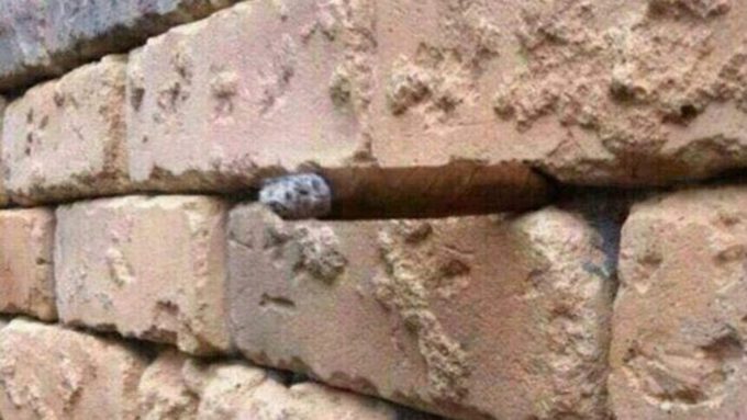 Denne optiske illusion tog nettet med storm, og folk spekulerede sig gråhårede for at finde ud af, hvad det var, der havde kilet sig ind i murstenene. (