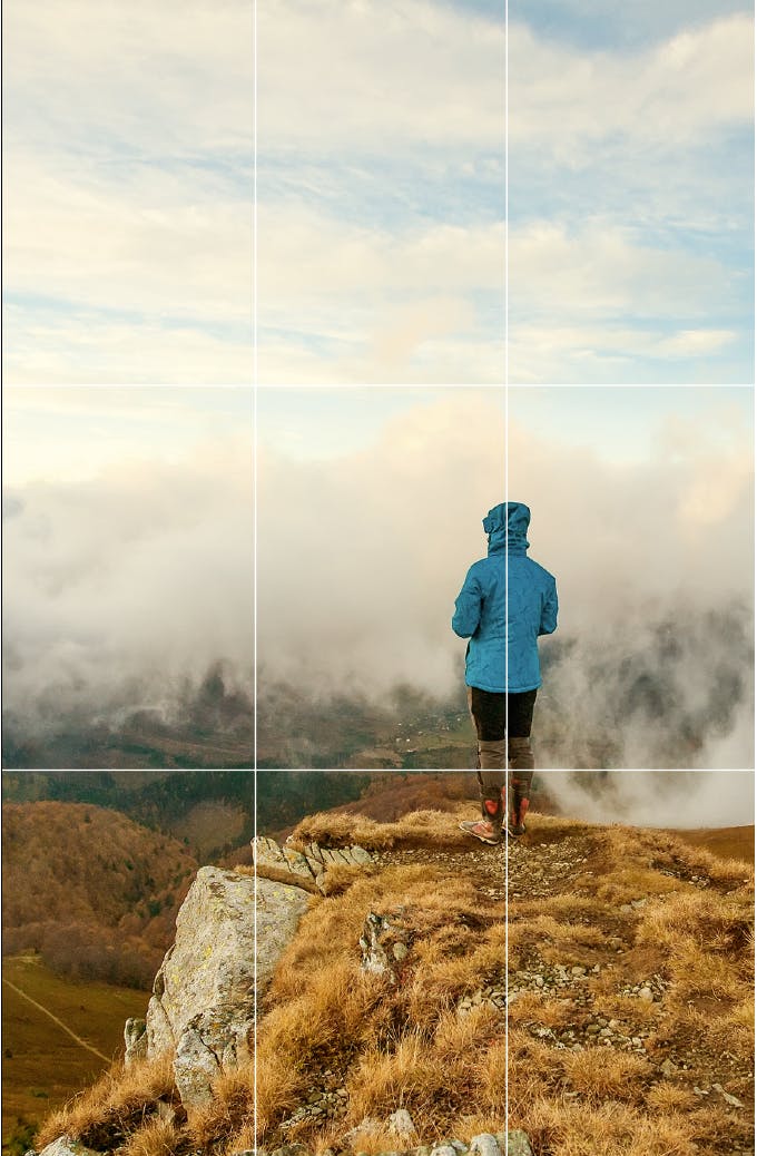 Det er i praksis umuligt at gøre på øjemål, men reglen kan stadig bruges, når du skal udvælge din komposition. Hav Det gyldne snit med i baghovedet, når du lægger en strategi for, hvordan kompositionen i billedet skal være.