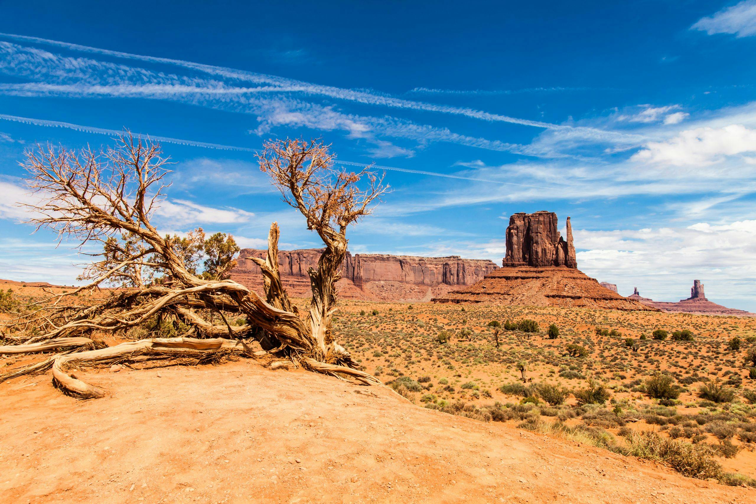 I billedet fra Grand Canyon står den orange jord i skarp kontrast til den blå himmel og giver energi til et ellers simpelt opbygget billede.