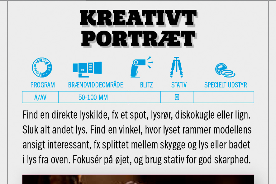 Med motivkort får du anvisninger til konkrete motiver, så du ved, hvilket grej du skal bruge, og hvordan du griber opgaven an. Her kan du hente motivkort til portrætbilleder.