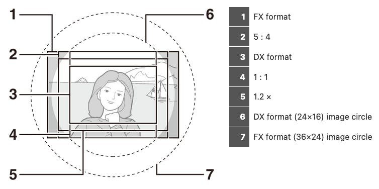 Har du fx et kamera med en opløsning på 24,0 mio. pixels, vil opløsningen falde til 20,3 mio. pixels, hvis du har valgt formatet 16:9. På samme måde ændres opløsningen til 21,3 mio. pixels, hvis du vælger formatet 4:3.