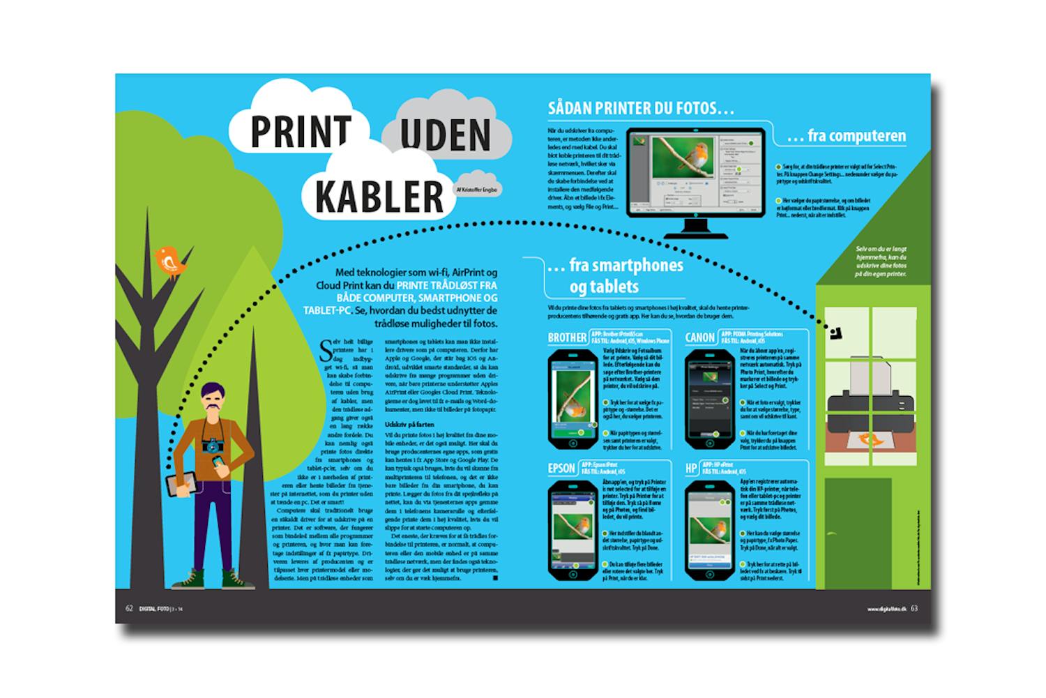 Med en printer, der understøtter wi-fi, er du ikke længere bundet til at udskrive fotos og dokumenter fra computeren, der skal stå lige ved siden af. Den trådløse teknologi, som findes i stort set alle nye printere, gør det også muligt at printe direkte fra smartphones og tablet-pc'er, og du kan tilmed få dine fotos ud i høj kvalitet. Det kræver bare, at du bruger printerproducenternes særlige apps.
