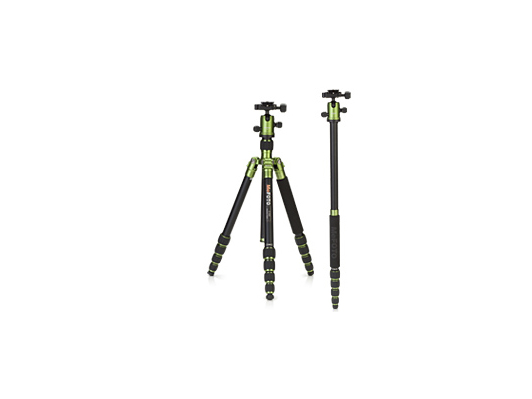 Det leveres inklusive et kuglehovede og har indbygget vaterpas. En meget smart ting er, at det kan bygges om til et monopodstativ uden brug af værktøj. Det foregår ved at kombinere midtersøjlen med et af benene.