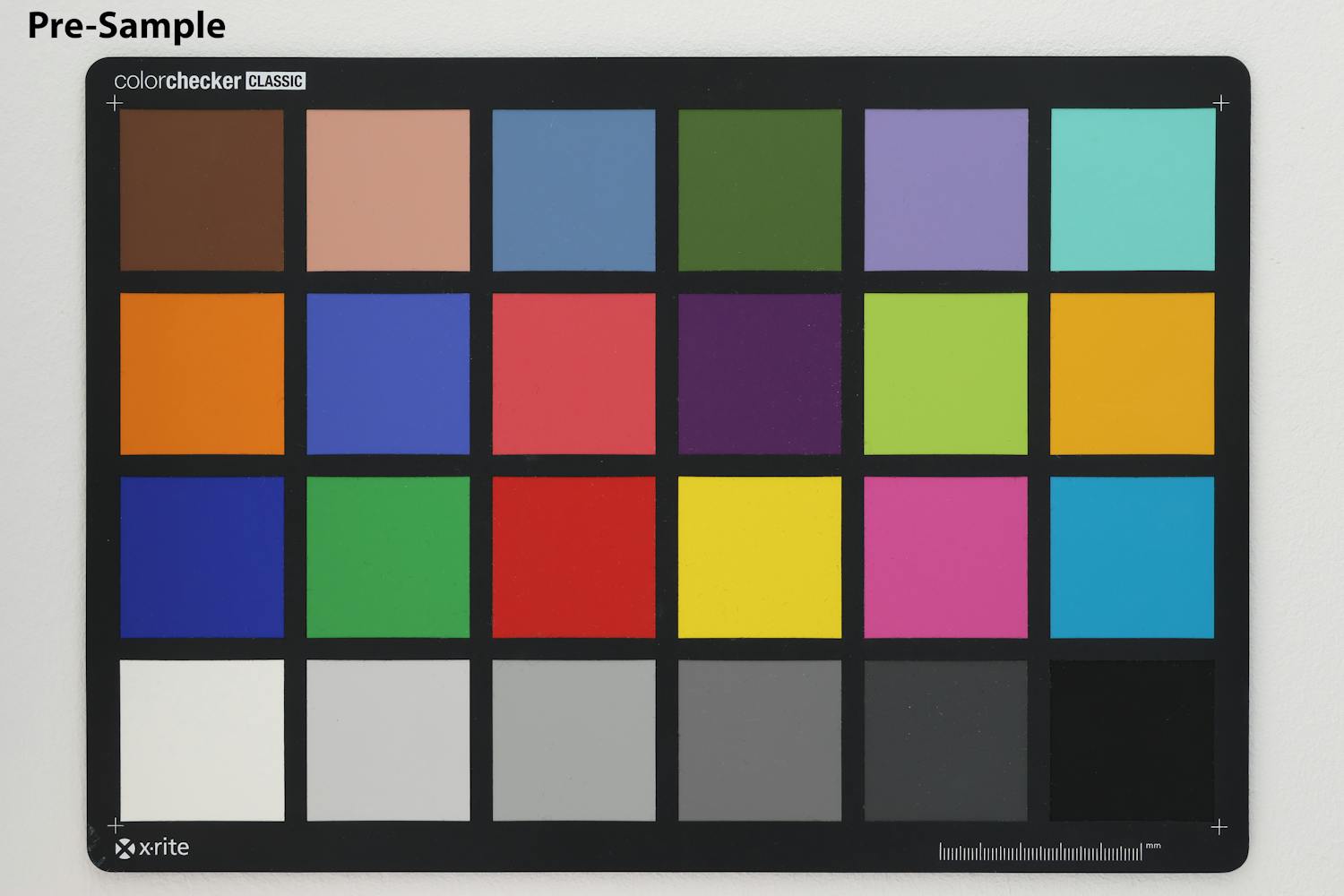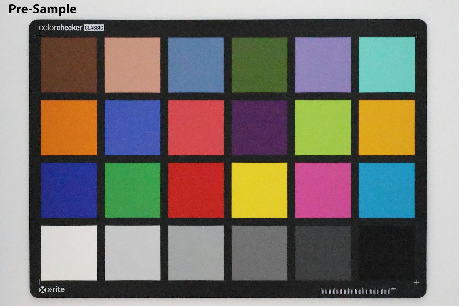 Billeder af farvekort er taget på henholdsvis laveste ISO-værdi uden ISO-udvidelse, ISO 1600, ISO 6400 og højeste mulige ISO-værdi med udvidelse.