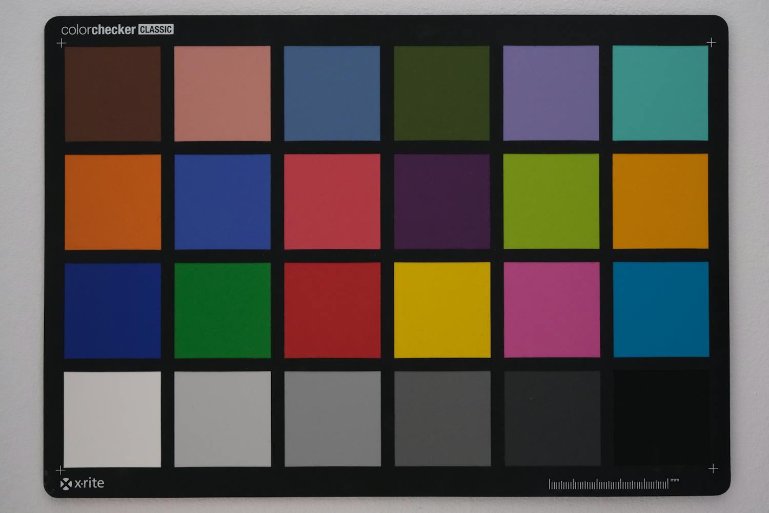 Billeder af farvekort er taget på henholdsvis laveste ISO-værdi uden ISO-udvidelse, ISO 1600, ISO 6400 og højeste mulige ISO-værdi med udvidelse.