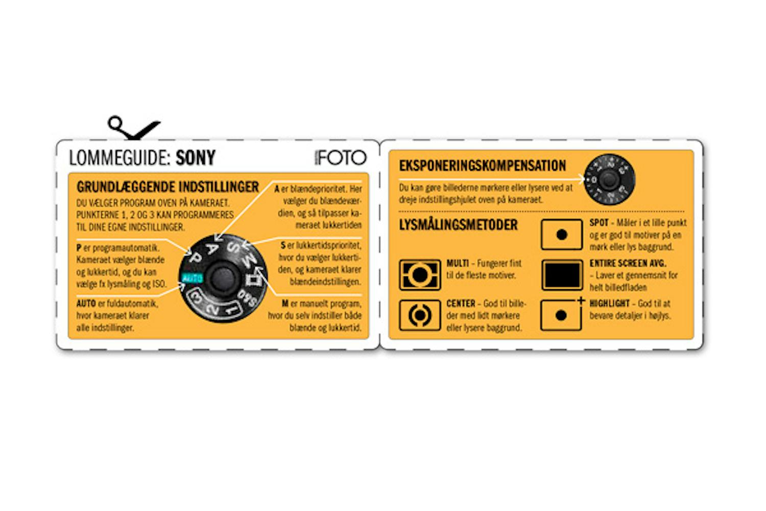 Lommeguiden er i pdf-format, så du selv kan printe den på A4-papir, klippe den ud og folde den. Den er i kreditkortstørrelse, så du kan opbevare den i en pung, eller lægge den i fototasken. Du kan også gemme guiden på telefonen.