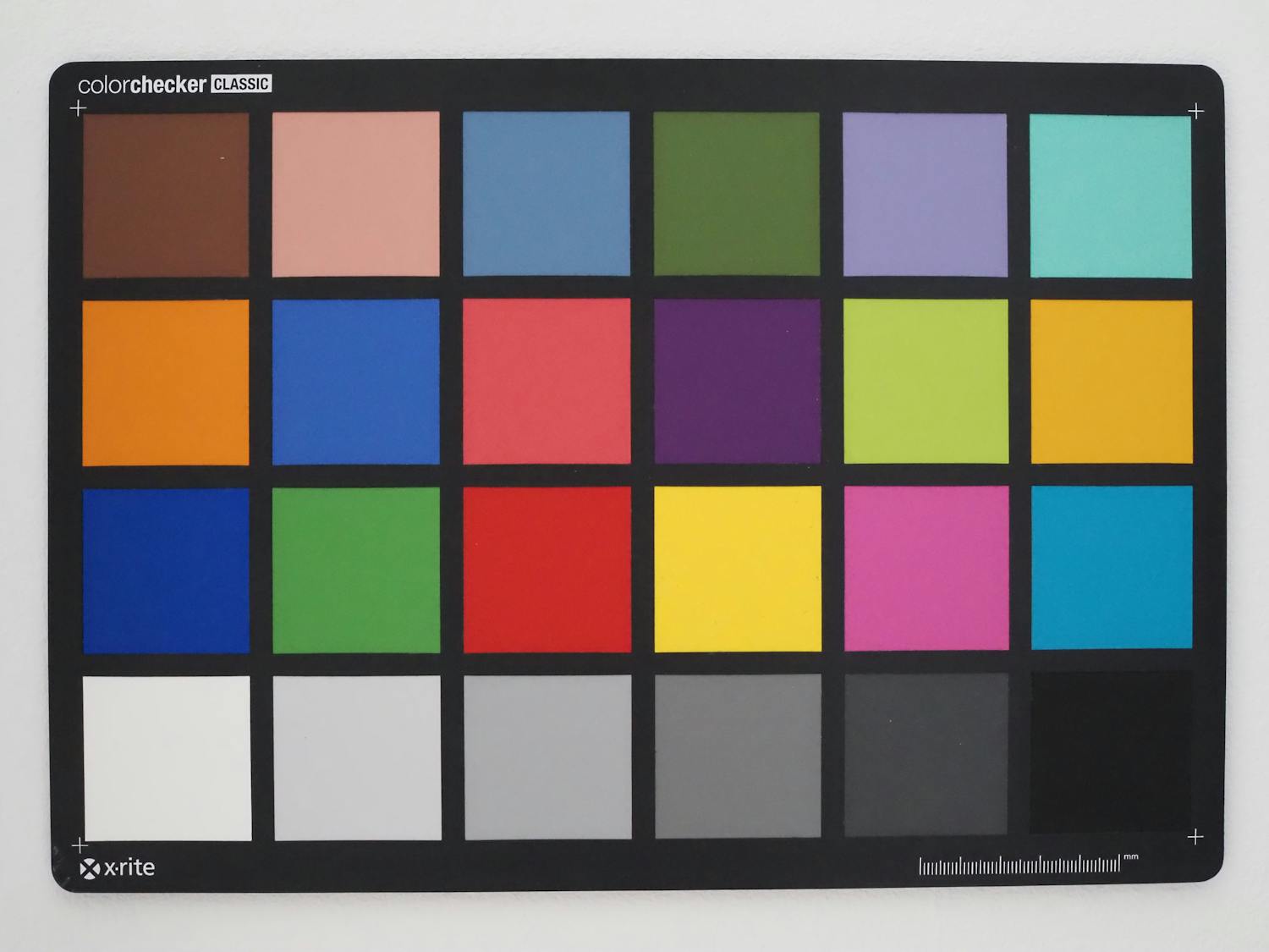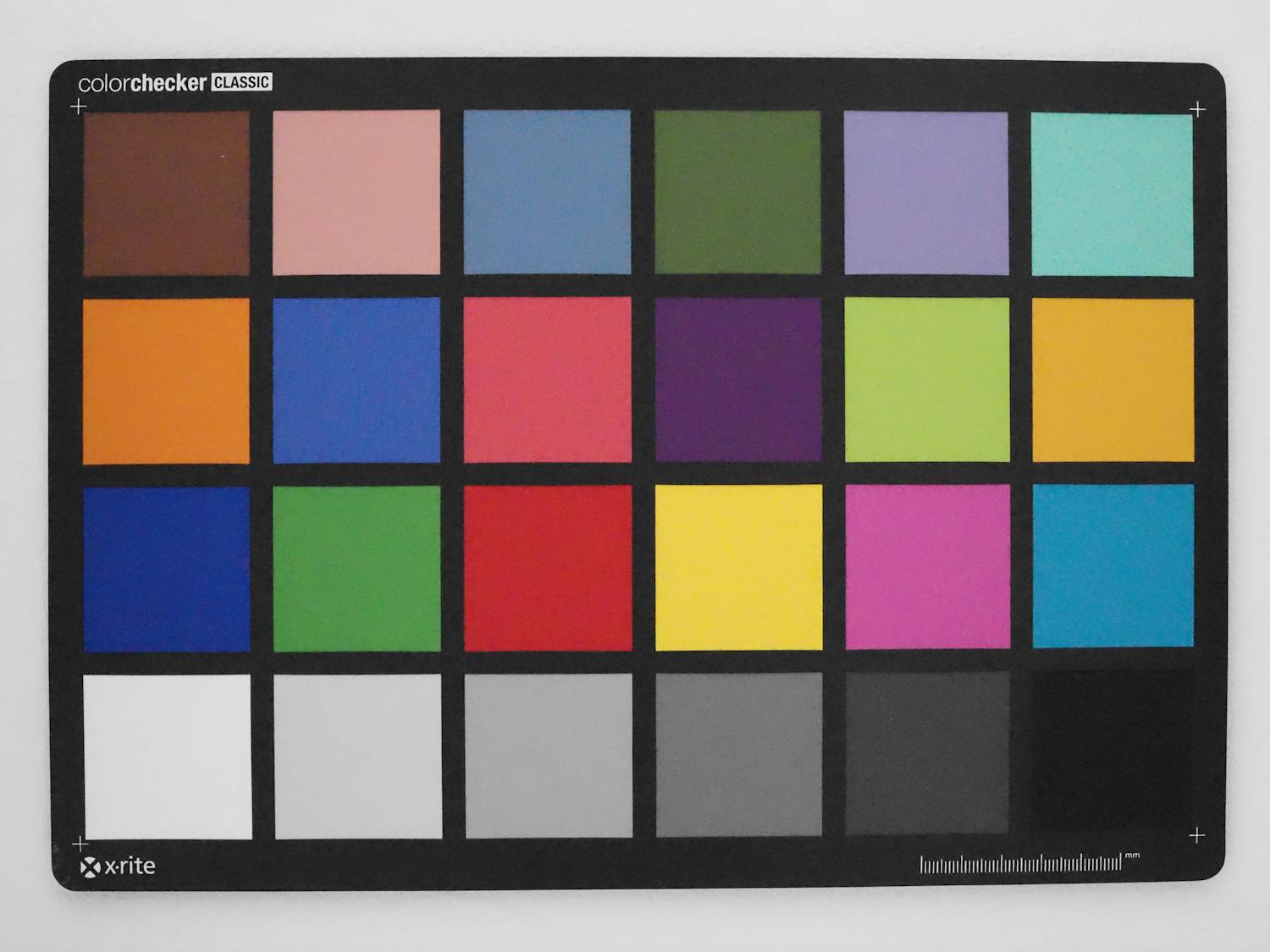 Billeder af farvekort er taget på henholdsvis laveste ISO-værdi uden ISO-udvidelse, ISO 1600, ISO 6400 og højeste mulige ISO-værdi med udvidelse.