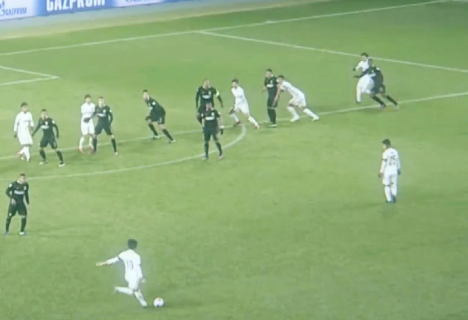 I et videorum opdager to assistenter episoden. De sender besked til dommeren, som på en skærm tydeligt kan se, at den hvide spiller bliver fældet af den sorte. Straffespark!