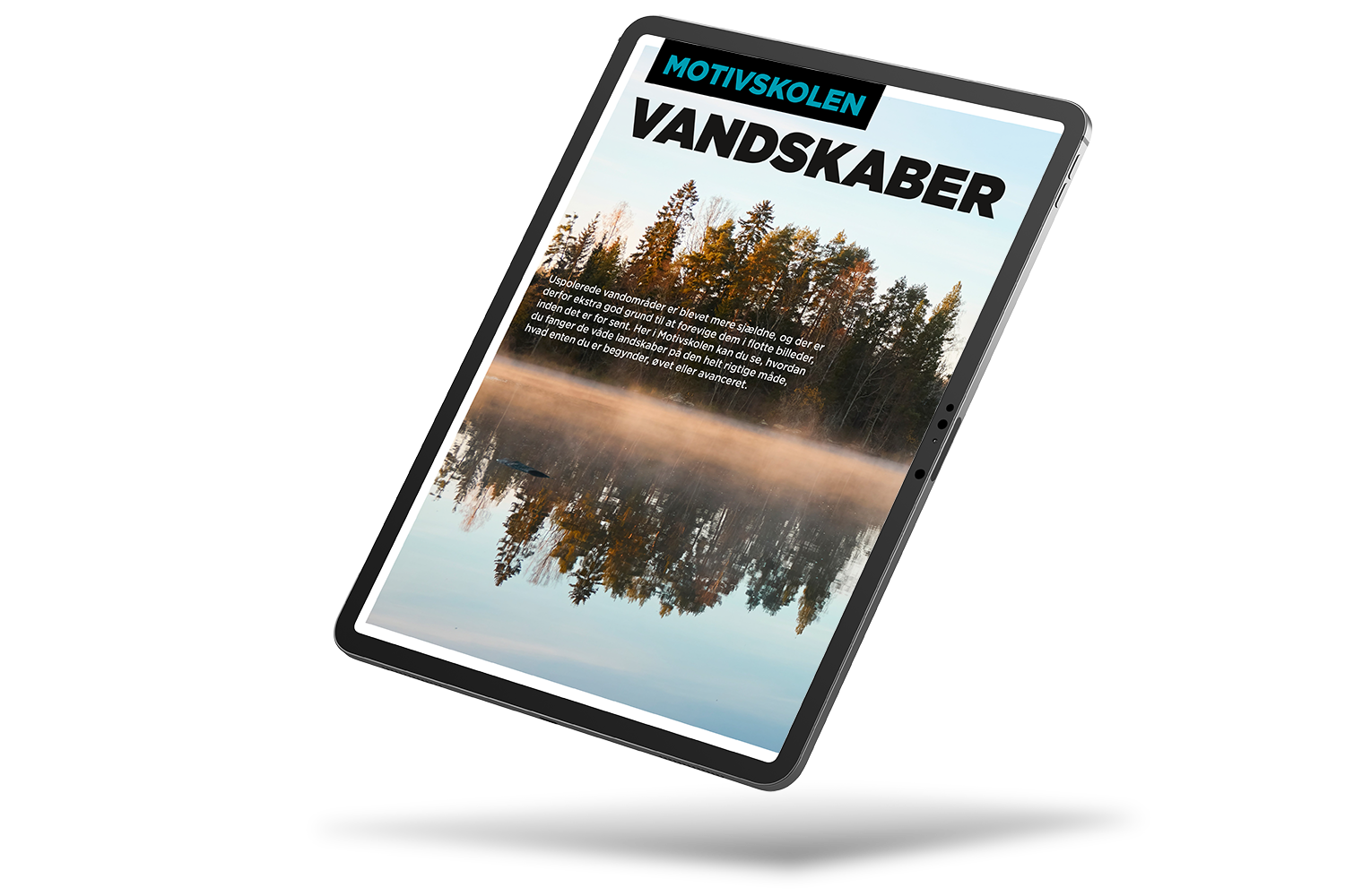 Landskabsbilleder Motivskolen: Vandskaber Her kan du hente e-bogen, hvor vi gennemgår alt det grundlæggende, du skal vide, når du vil tage billeder af vandskaber.