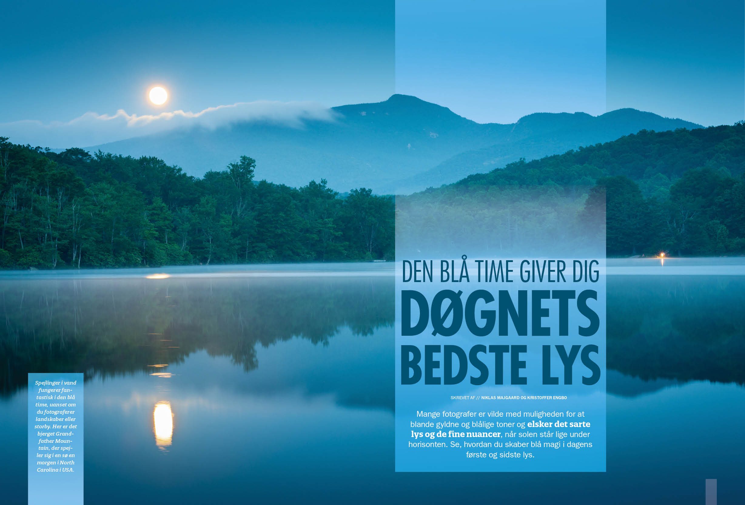 Fotografering Guide til døgnets bedste lys Se, hvordan du skaber blå magi i dagens første og sidste lys i denne artikel, hvor vi hjælper med tidspunkter, indstillinger og motivinspiration. Guiden er i pdf-format og kan gemmes på computere, telefon eller tablet.